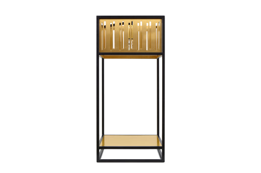 Vloerlamp Oriente Vloerlamp Oriente is een hoge en luxe vloerlamp van maar liefst 180 cm. De lamp is gemaakt van een stalen frame in goud en zwart. Het zwarte frame is voorzien van een poedercoating. Op het plateau van de lamp kunt u nog...- €1.205,00