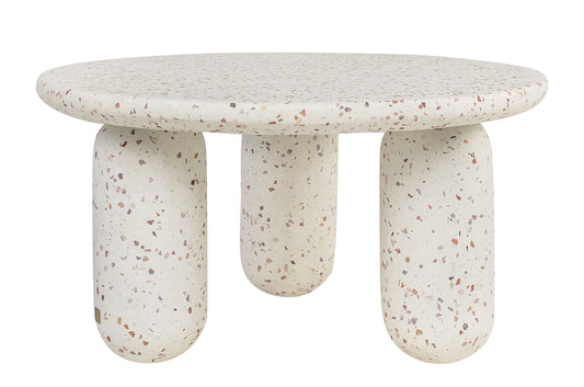 Terrazzo bijzettafel Freddy wit Deze Terrazzo bijzettafel Freddy is een witte terrazzo tafel die perfect past bij terrazzo salontafel Charlene. Samen met de salontafel kun je een leuke set tafels creëren. Terrazzo heeft een frisse en stijlvolle uitstraling en kan ook buiten geplaatst worden....- €363,00