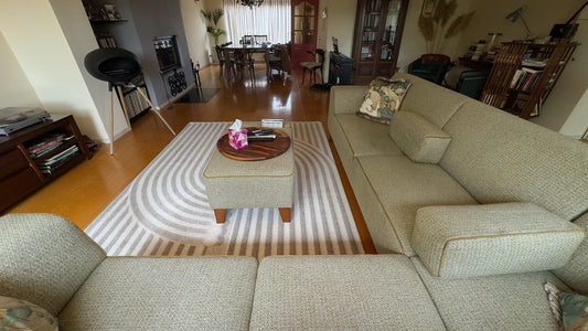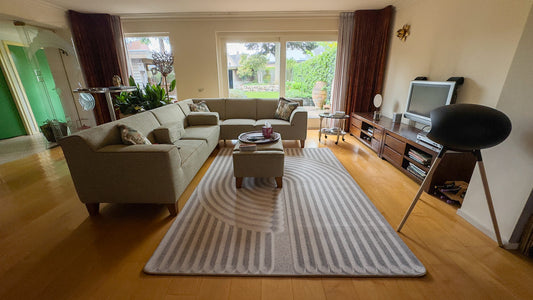 Deze klant was toe aan een ander vloerkleed en vroeg ons om advies. Klant heeft gekozen voor Vloerkleed Chemistry in de kleur Morning Dunes van Moooi Carpets (designer Sjoerd Vroonland).