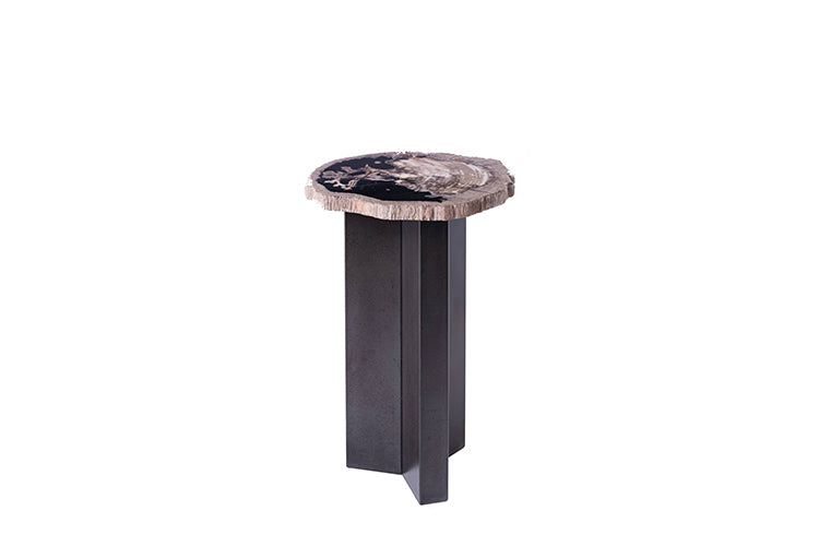 Bijzettafel Jisse zwart heeft een tafelblad van versteend hout en een metalen poot. De combinatie van materialen zorgen voor een luxe uitstraling van deze ronde bijzettafel en voegt tevens een vleugje luxe toe aan uw interieur.