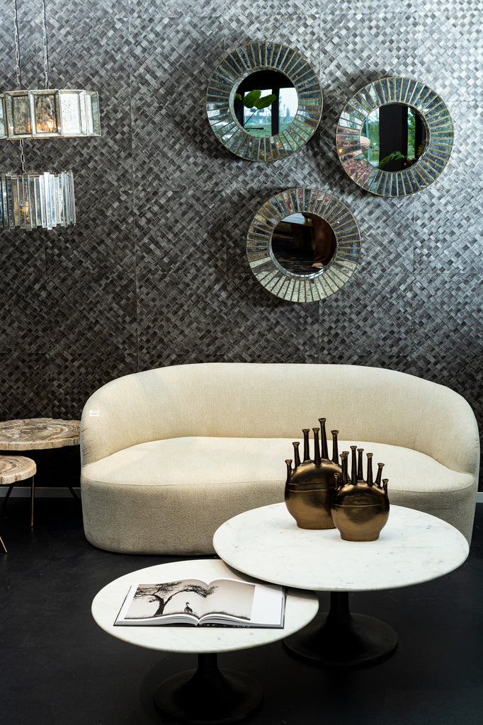 Deze moderne driezitsbank Bohne in Cream kleur is een licht gebogen bank die helemaal aansluit met de hedendaagse trends. De bank is opgebouwd uit een beukenhouten frame met een nosag vering in de zitting. Het schuim in de zitting is opgebouwd uit verschillende densiteit lagen, wat de bank voorziet van ultiem comfort. De bekleding van de Bohne Cream heeft een luxe, vintage uitstraling door de laagpolige semi velourse stof.