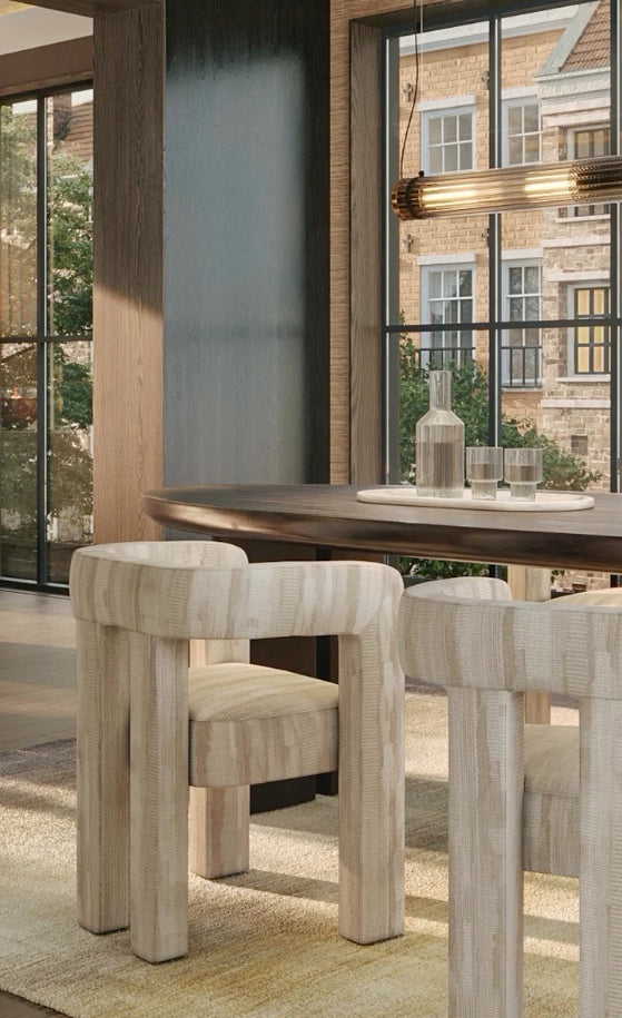 Eetkamerstoel Madison met stof Scape Sand brengt leven in je interieur. Deze moderne eetkamerstoel heeft een opengewerkte rug waardoor de stoel niet te massief overkomt. Er is ook een bankje te koop in deze stijl zodat je een complete zithoek kunt inrichten met dezelfde uitstraling.