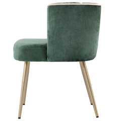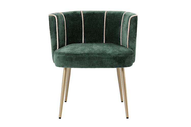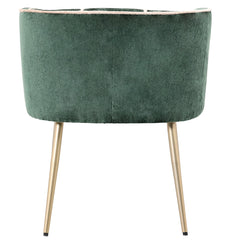 Eetkamerstoel Nell is een groene eetkamerstoel met een chique uitstraling. De bekleding is van 100% polyester en de poten zijn van goudkleurig metaal. Deze stoel is gemaakt om lekker lang in te dineren met je familie of vrienden.