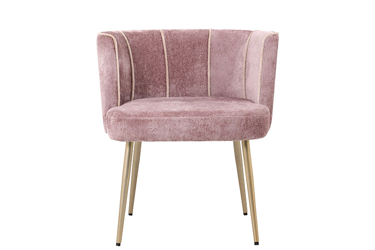 Eetkamerstoel Nell is een roze eetkamerstoel met een chique uitstraling. De bekleding is van 100% polyester en de poten zijn van goudkleurig metaal. Deze stoel is gemaakt om lekker lang in te dineren met je familie of vrienden.