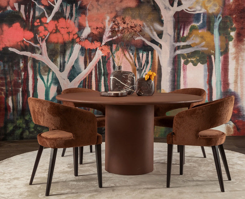 Eettafel Laya Red is een mooie simplistische ronde eettafel in een warm rode kleur. Deze rode eettafel is afgewerkt met een matte mortex finish wat de tafel een unieke uitstraling geeft.
