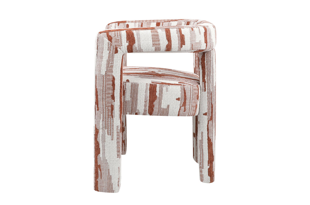 De Madison eetkamerstoel met stof Scape Terra brengt leven in je interieur. Deze moderne eetkamerstoel heeft een opengewerkte rug waardoor de stoel niet te massief overkomt. Er is ook een bankje te koop in deze stijl zodat je een complete zithoek kunt inrichten met dezelfde uitstraling.
