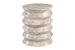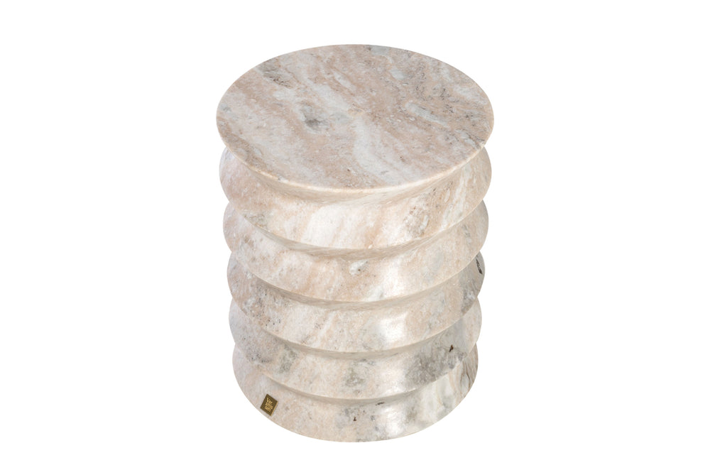 De marmeren bijzettafel Bando is gemaakt van Toronto Marmer en heeft een luxueuze uitstraling. Door de mooie beige kleur valt deze ronde bijzettafel makkelijk te combineren met andere kleuren.