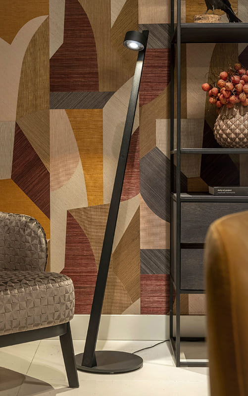 Deze uitvoering van de Omega vloerlamp komt in de kleur zwart, wat bijdraagt aan de moderne en strakke uitstraling van de lamp.