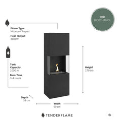 Als brandstof gebruik je de Tenderfuel wat een veilig alternatief is op de bio-ethanol. Het indrukwekkende vermogen van 2000 watt zorgt voor voldoende warmte.